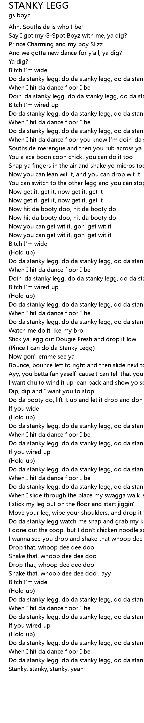Doin' da stanky legg, do da stanky legg, do da stanky legg |