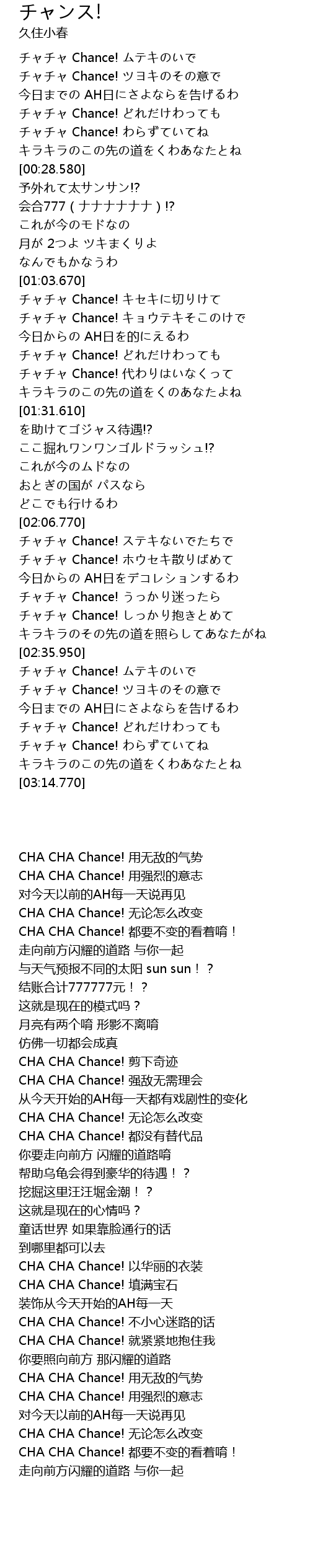 チャチャ Chance! キセキに切りけて |