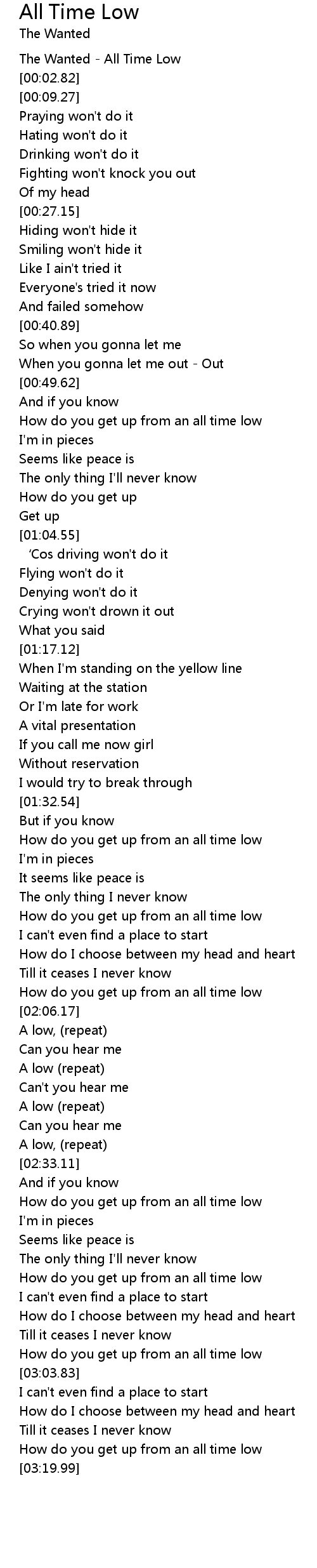 | [00:00.90] | The Wanted All Time Low |
