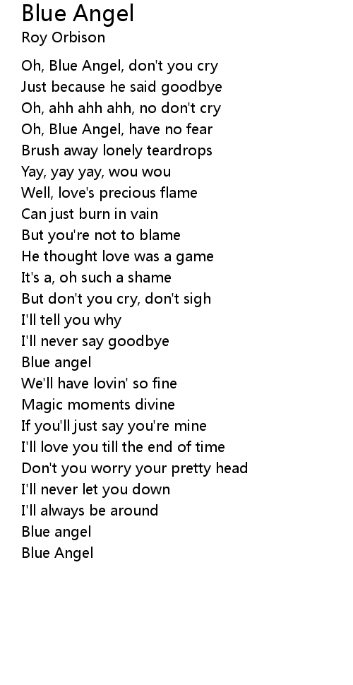 Oh, Blue Angel, don't you cry |