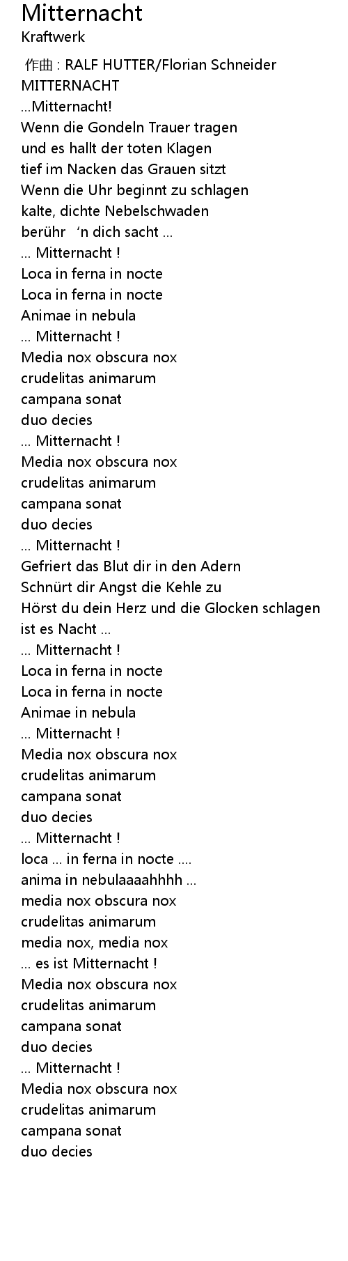 | [00:00.000] | zuo qu : RALF HUTTER Florian Schneider |