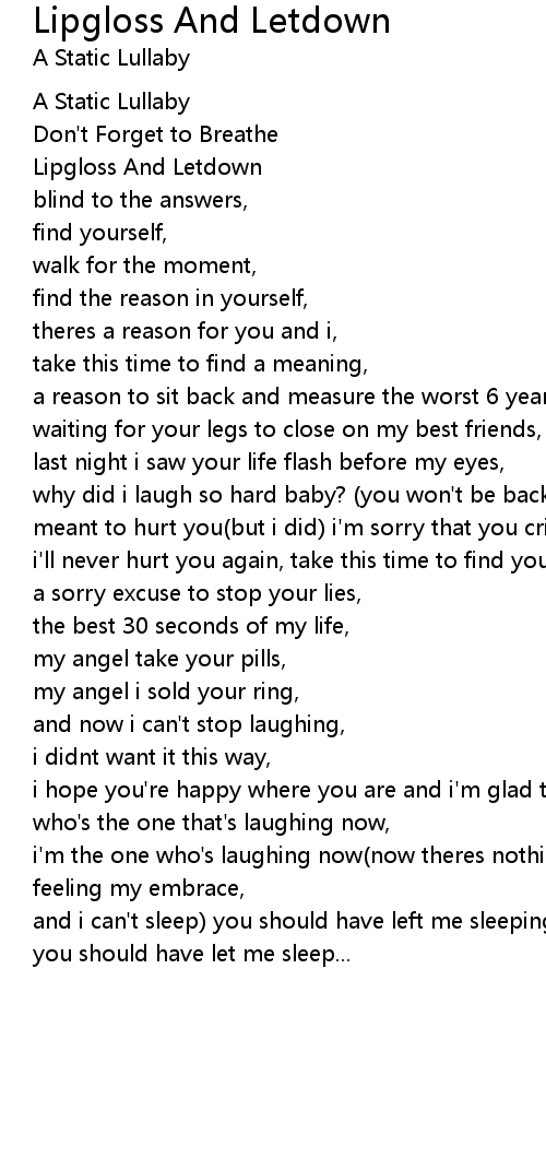 why did i laugh so hard baby? (you won't be back and i'm still laughing) i never meant to hurt you(but i did) i'm sorry that you cried so hard darling, |