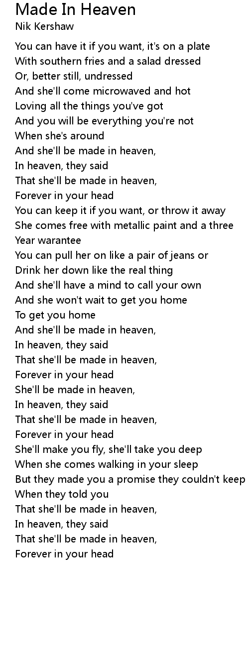And she'll be made in heaven, |