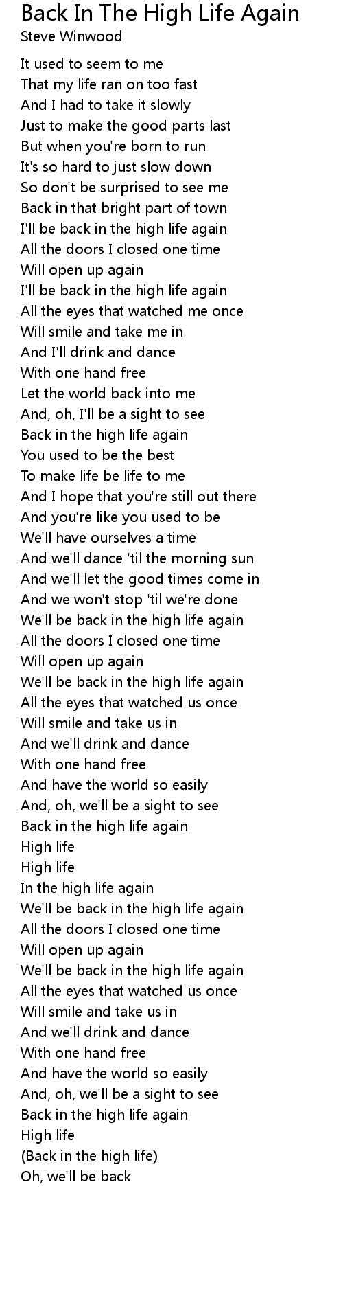 (Back in the high life) |