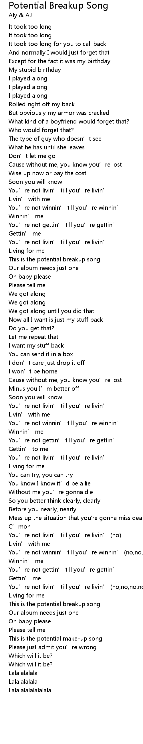 | This is the potential breakup song | |