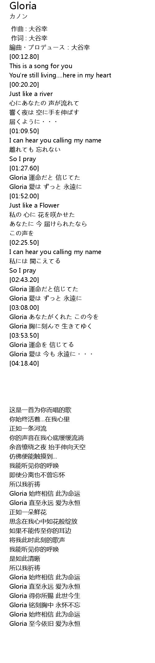 | [03:42.60] | Gloria 胸に刻んで 生きてゆく |