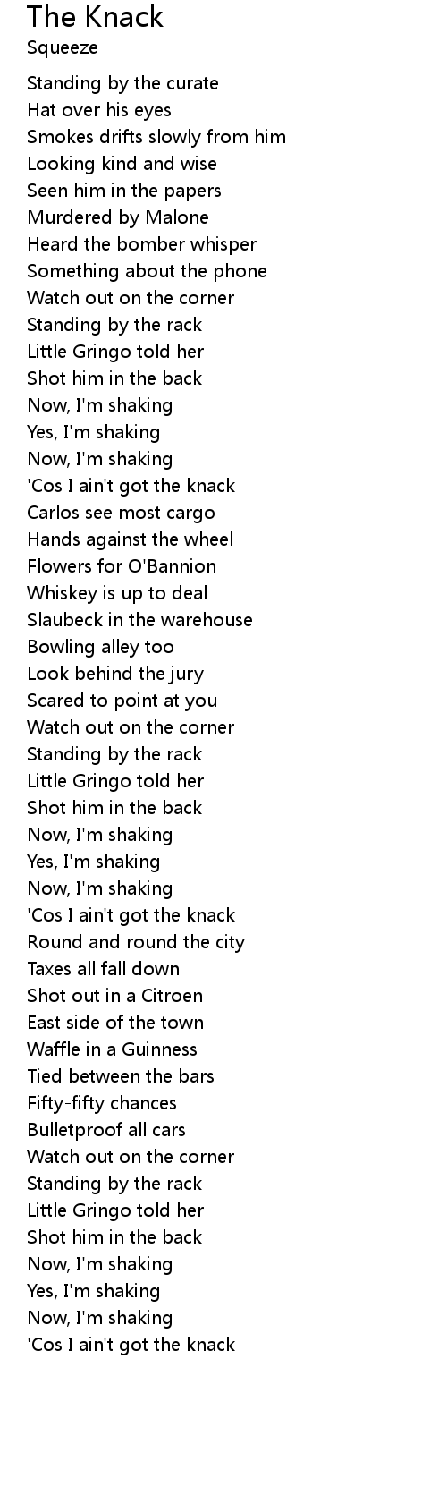 'Cos I ain't got the knack |