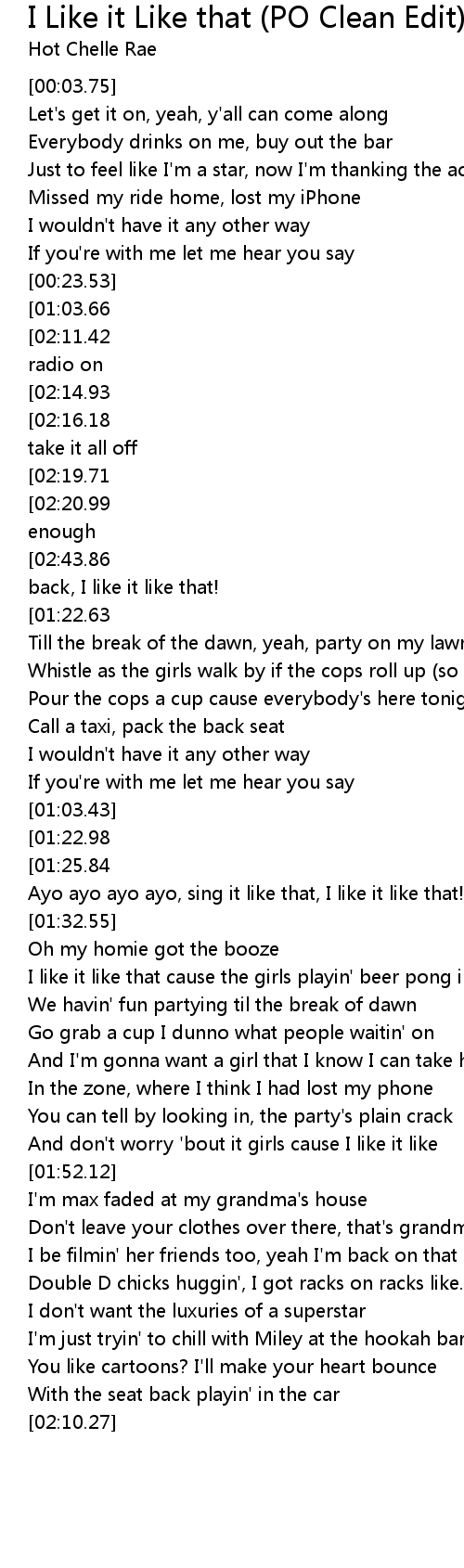 | [01:34.52] | I like it like that cause the girls playin' beer pong in the back |