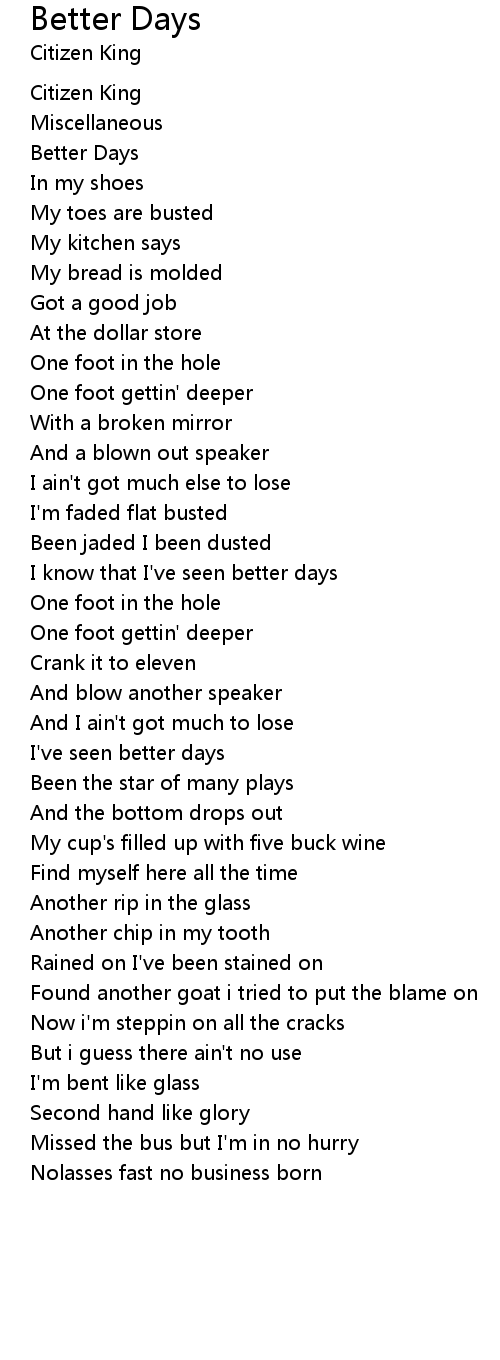 I know that I've seen better days |
