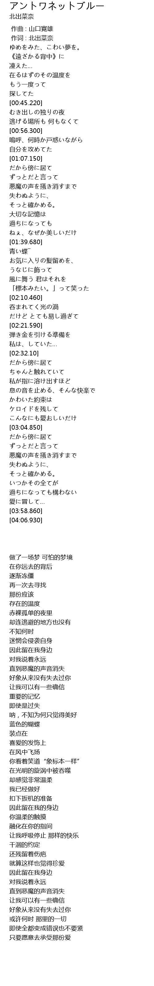 | [00:01.00] | 作词 : 北出菜奈 |