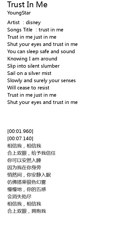| [00:07.140] | Songs Title : trust in me |