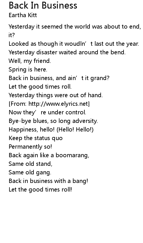 | Song | Back In Business |