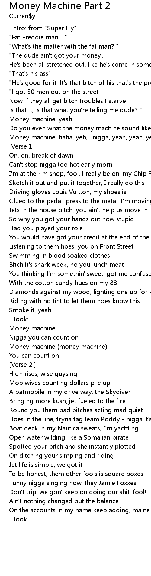 Money machine, haha, yeh,.. nigga, yeah, yeah, yeah, yeah |