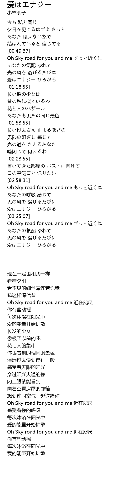 | [03:47.41] | 爱はエナジー ひろがる |