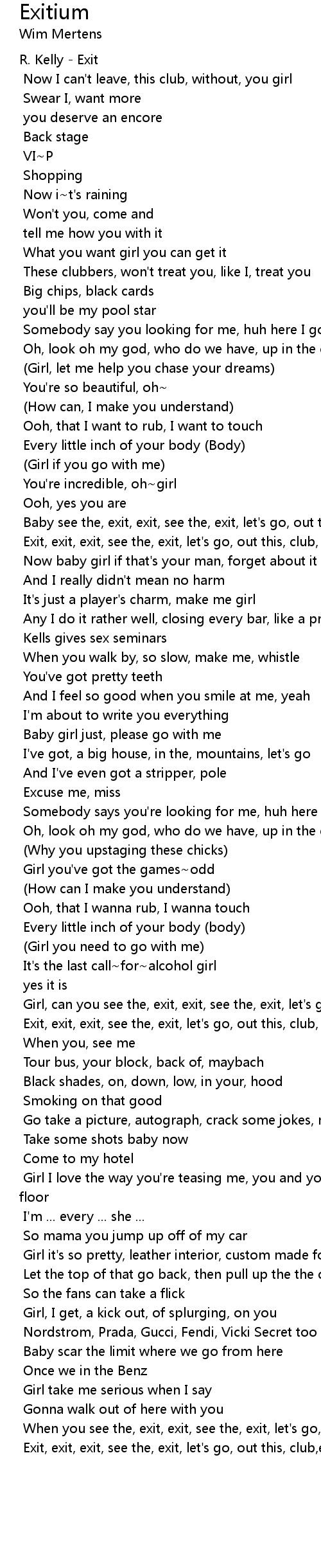 Exit, exit, exit, see the, exit, let's go, out this, club, exit |