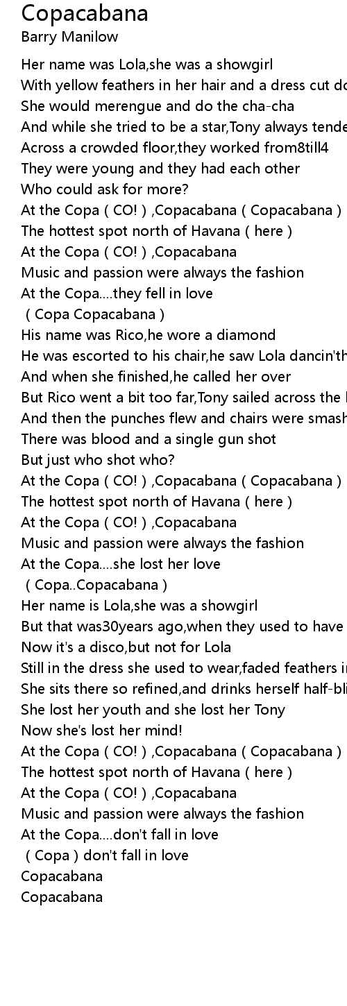 | [00:50.56] | At the Copa(CO!),Copacabana(Copacabana) |