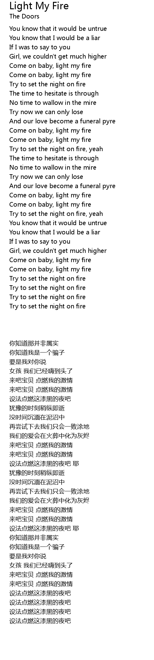 Come on baby, light my fire |