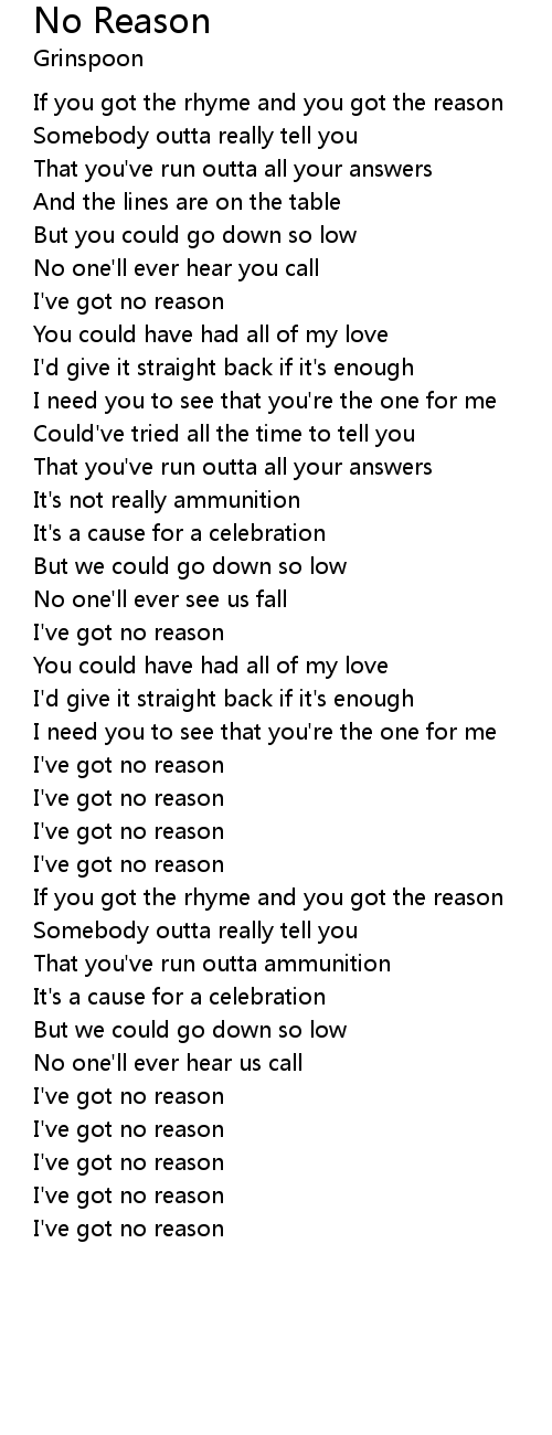 I've got no reason |