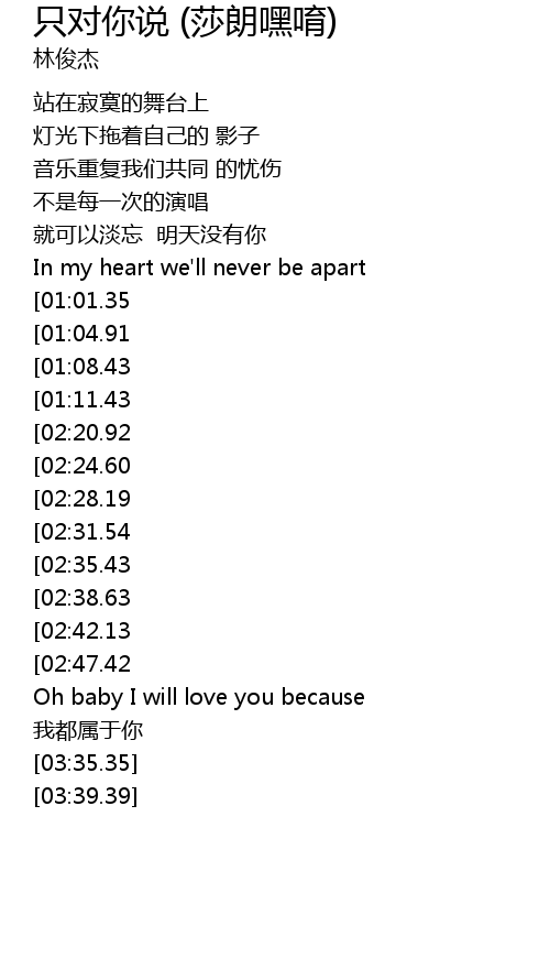 | [03:07.37][02:35.43][01:30.82] | (我爱你)只对你说 |