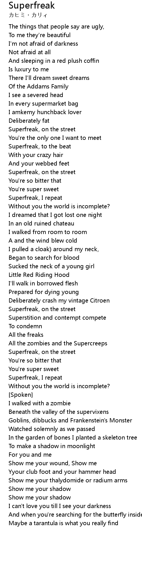 Superfreak, to the beat |