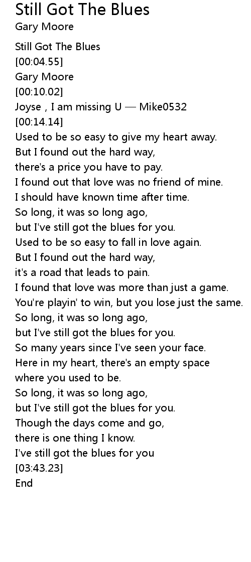 | [00:12.30] | Joyse,I am missing U — Mike0532 |