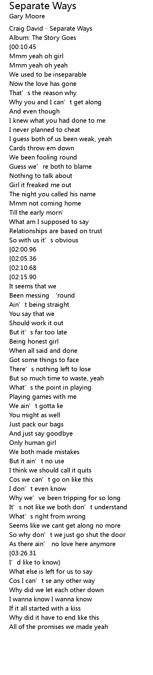 | [00:00.00] | Craig David - Separate Ways |