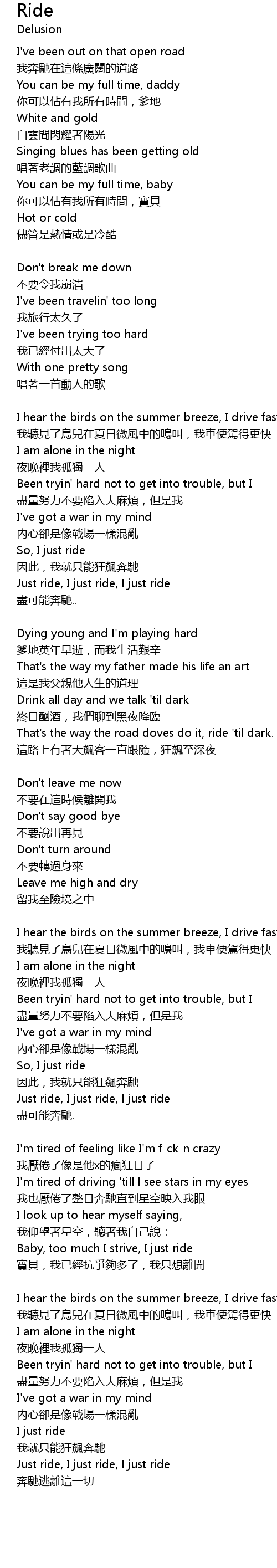 | Baby, too much I strive, I just ride | |