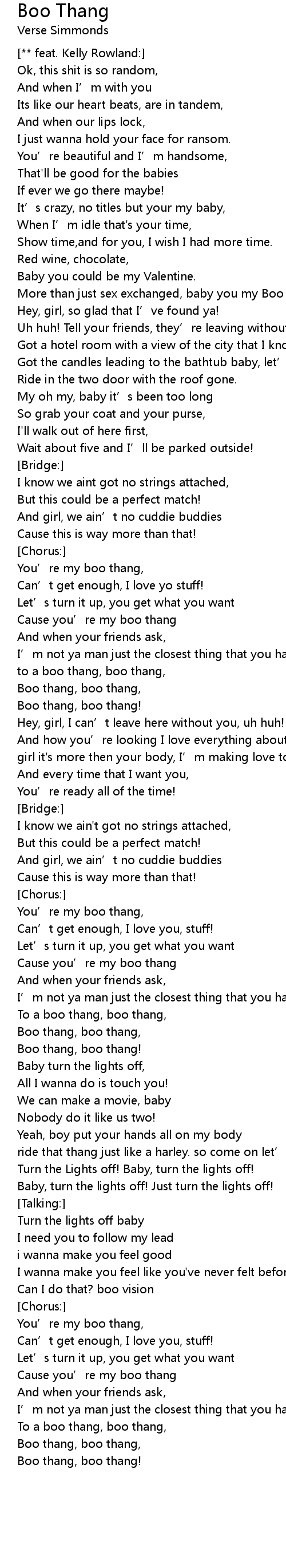 | You’re my boo thang, | |