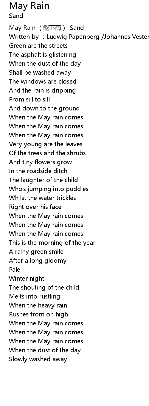 | [00:00.00] | May Rain (能下雨)-Sand |