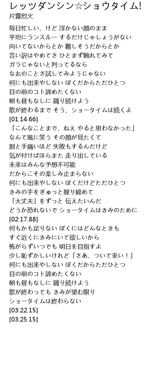 | [03:17.96] | ショータイムは終わらない |
