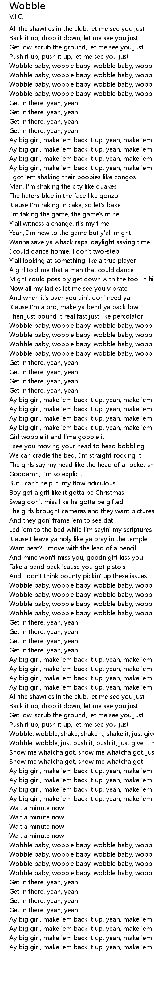 Wobble baby, wobble baby, wobble baby, wobble, yeah |