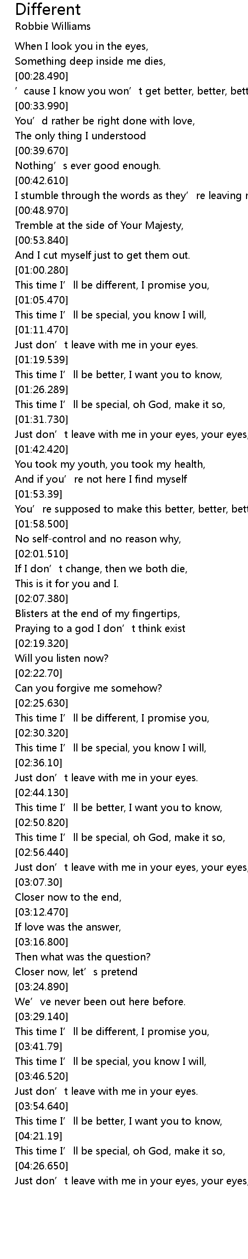 | [02:52.320] | This time I’ll be special, oh God, make it so, |