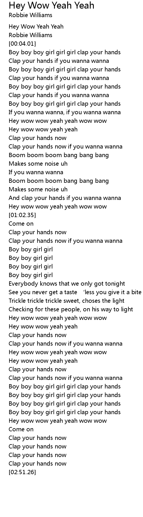 | [00:41.35] | Clap your hands now if you wanna wanna |