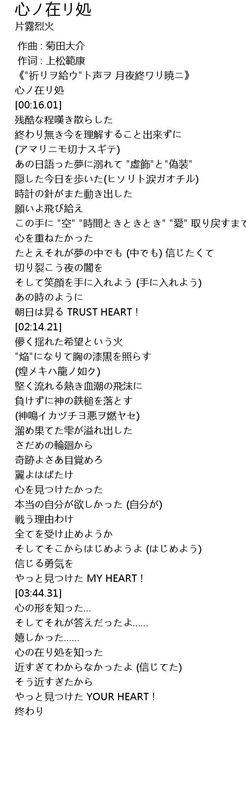 | [00:06.55] | 心ノ在リ処 |