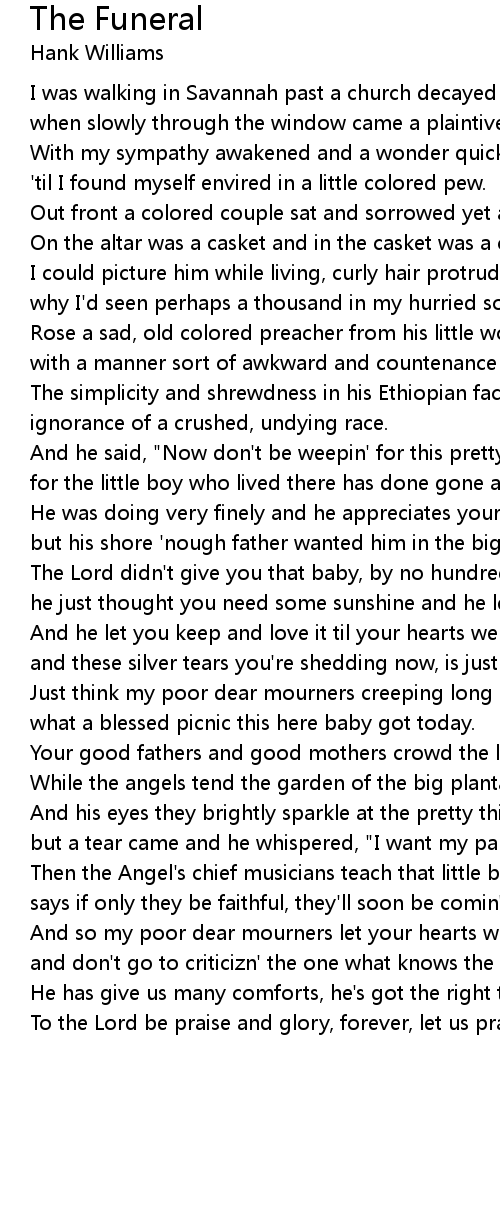 Just think my poor dear mourners creeping long on sorrow's way, |