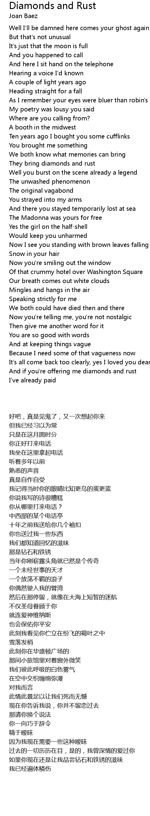 And if you're offering me diamonds and rust |