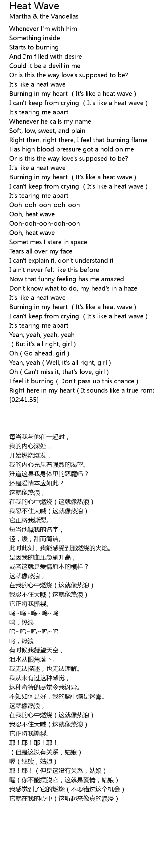 | [00:50.74] | I can't keep from crying (It's like a heat wave) |