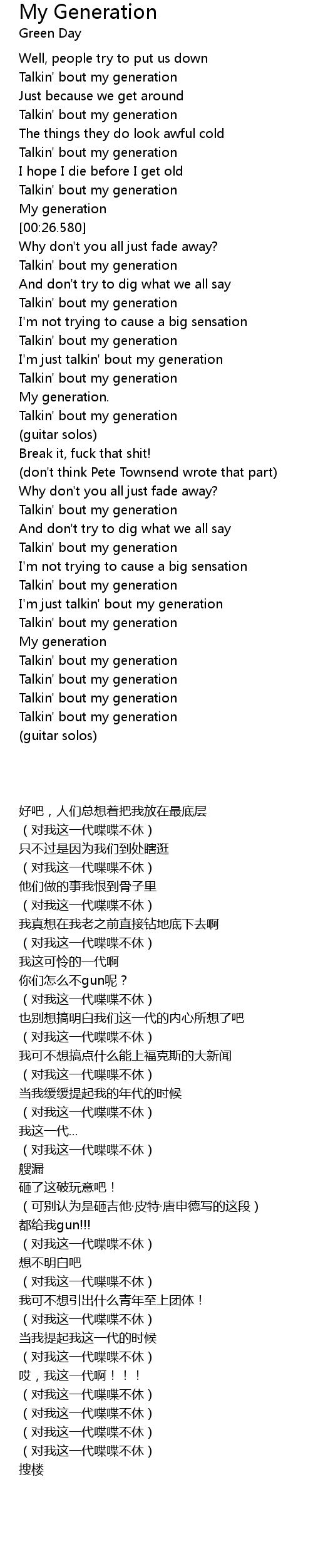 I'm just talkin' bout my generation |