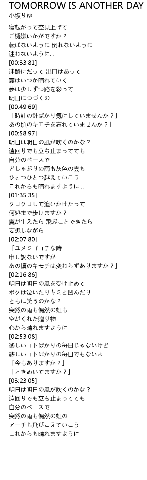 | [03:23.80] | 明日は明日の風が吹くのかな? |