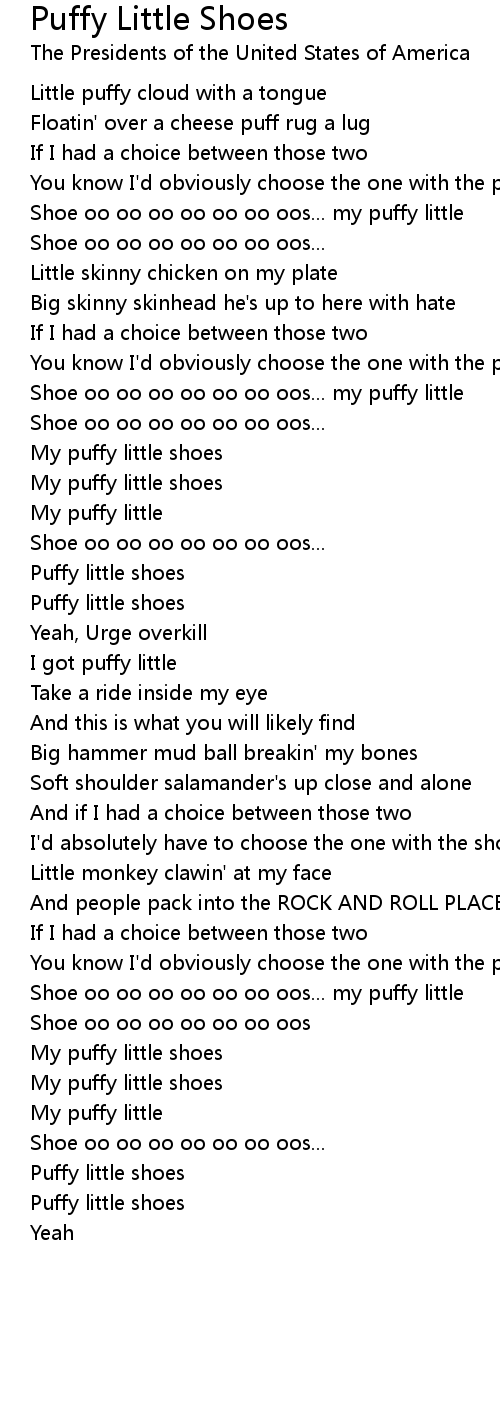 Shoe oo oo oo oo oo oo oos... my puffy little |
