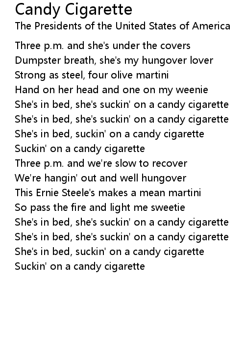 She's in bed, she's suckin' on a candy cigarette |
