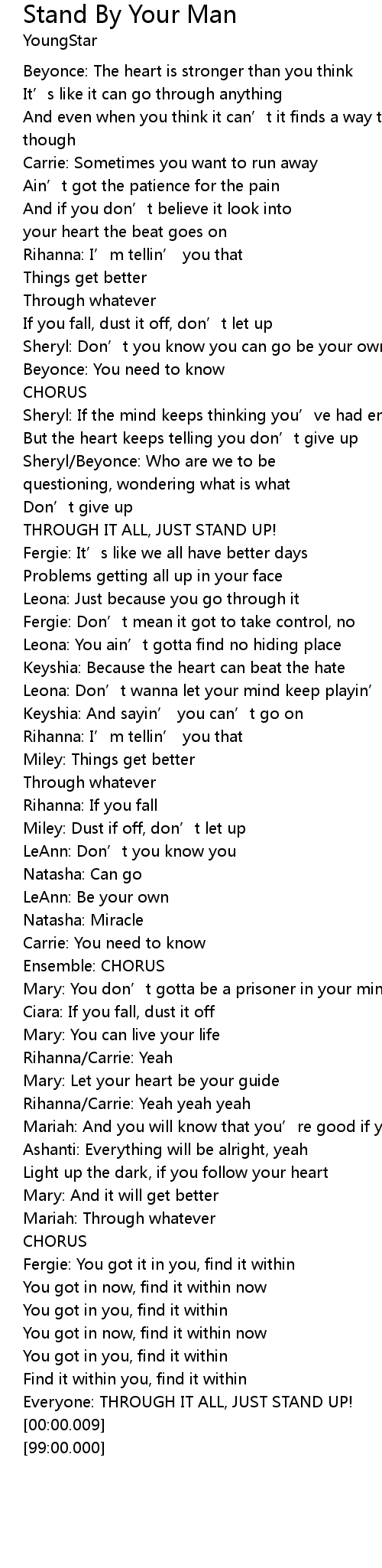 | [03:27.61] | Everyone: THROUGH IT ALL, JUST STAND UP! |