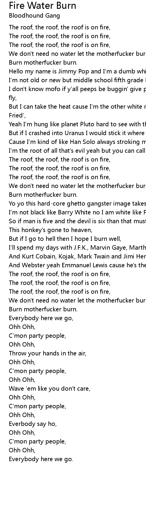 We don't need no water let the motherfucker burn, |