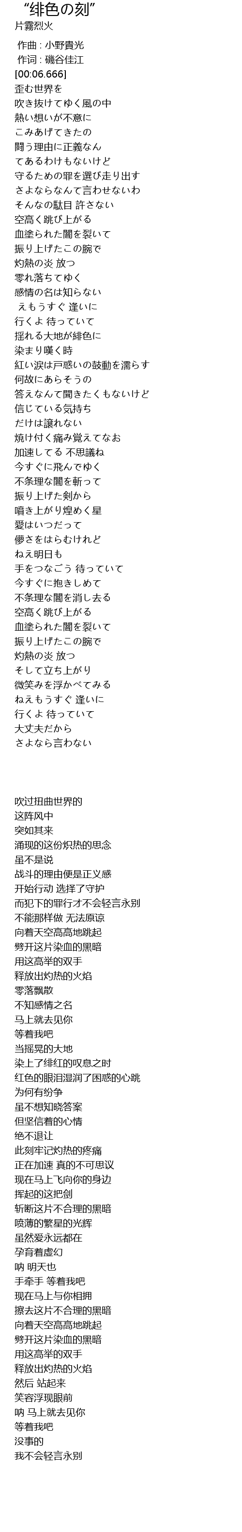 | Song | “绯色の刻” |