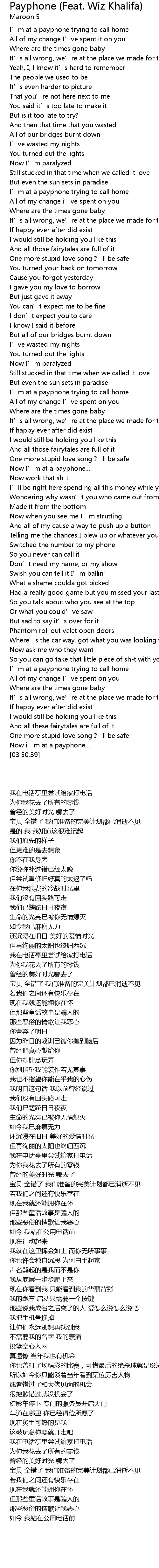 | [03:47.09] | Now i’m at a payphone… |
