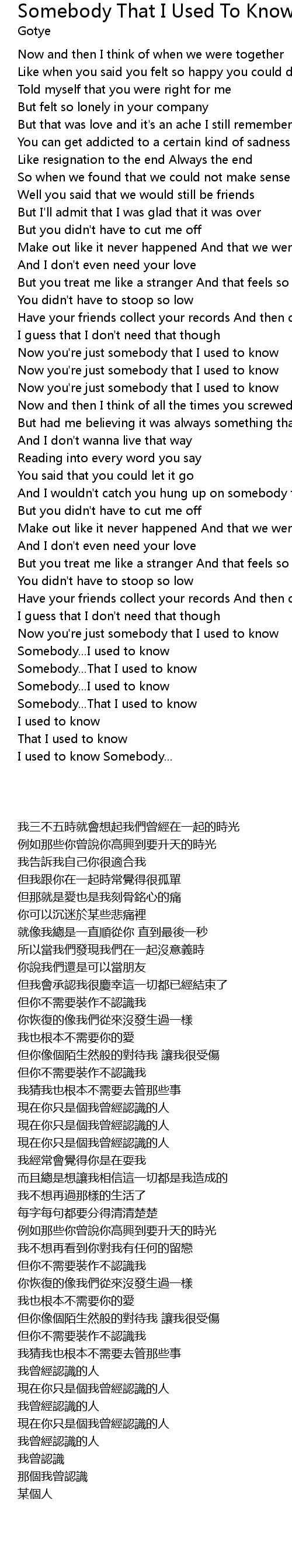 | [02:58.340] | And I wouldn't catch you hung up on somebody that you used to know... |