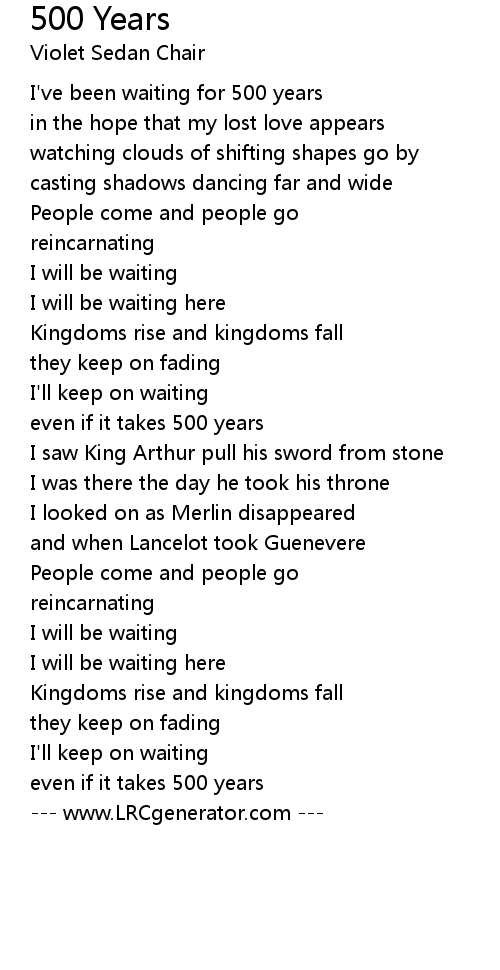 I've been waiting for 500 years |