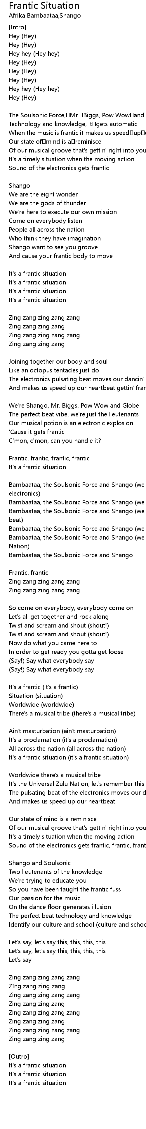 | Song | Frantic Situation |