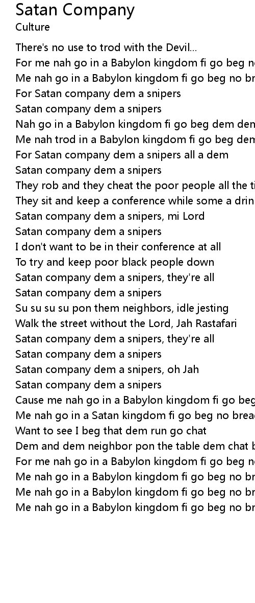 Me nah go in a Satan kingdom fi go beg no bread |