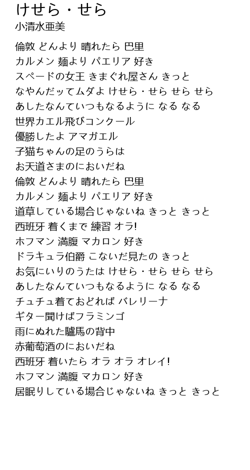 なやんだッてムダよ けせら・せら せら せら |